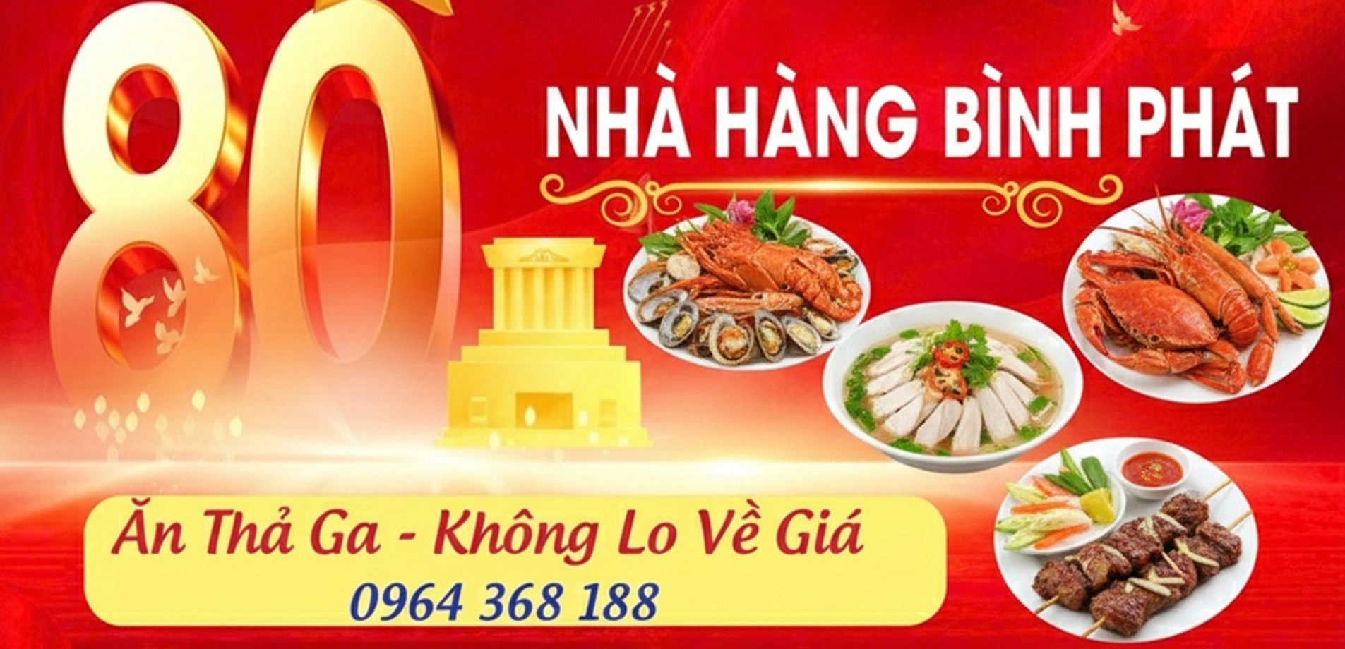 Nhân dịp đại lễ Quốc khánh 2/9, Nhà hàng Bình Phát trân trọng gửi đến quý khách hàng chương trình khuyến mãi đặc biệt với nhiều ưu đãi hấp dẫn. Đây là thời điểm lý tưởng để cùng gia đình, bạn bè quây quần bên nhau, thưởng thức những món ăn ngon trong không gian sang trọng, thoáng mát